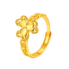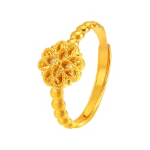 素金花朵小清新开口戒指