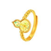 素金葫芦七彩小清新开口戒指