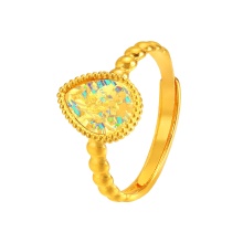 素金水滴七彩小清新开口戒指