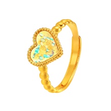 素金爱心七彩小清新开口戒指